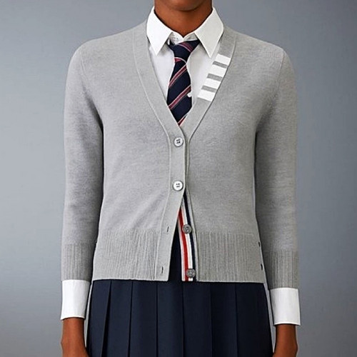THOM BROWNE 사선 저지 스티치 V넥 가디건
