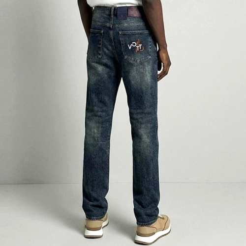 • LOUIS VUITTON 다미에 패치 포켓 레터링 자수 슬림핏 데님 팬츠