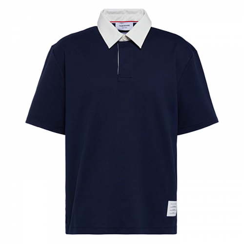 • THOM BROWNE 배색넥 로고패치 코튼 카라티