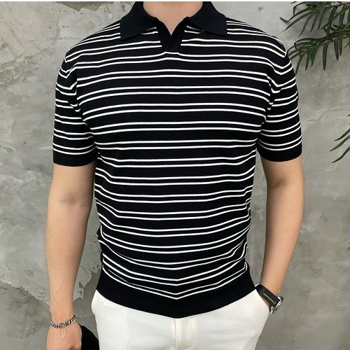 몽클*어 감마블루 스트라이프 카라
