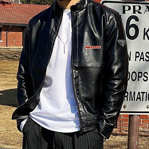 PRADA 레드패치 포인트 레더자켓