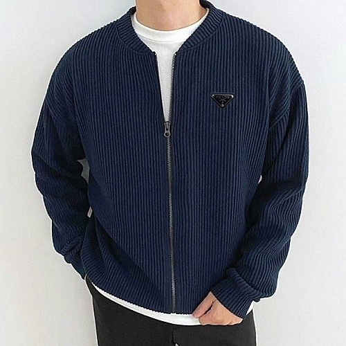 PRADA 브이넥 골지 집업 가디건 > 프라다
