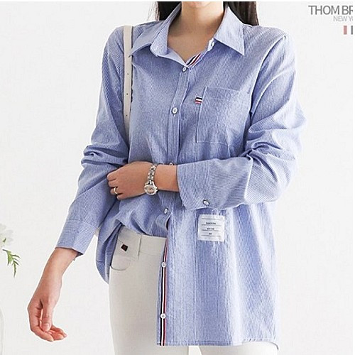 THOM BROWNE 스트라이프 코튼 롱 셔츠 > 톰 브라운