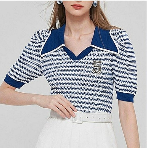 샤* 5 블루 카라 반팔 니트 > 샤넬