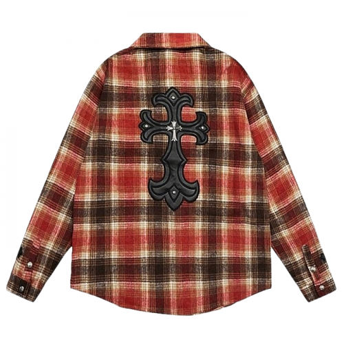 Chrome hearts 레더크로스 플란넬 체크셔츠 > 크롬하츠