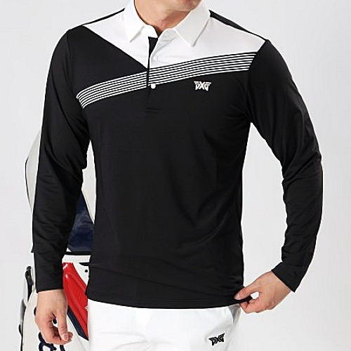 • P*G 가슴 배색사선 긴팔 카라티