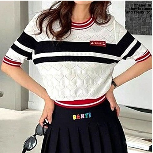 샤* 하트 패턴 펀칭 반팔니트 > 샤넬