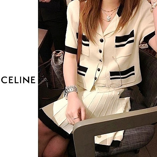 셀*느 배색 반팔 가디건 플리츠 세트 > 셀린느