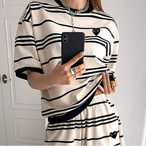 꼼데가*송 스트라이프 하트로고 카라 반팔