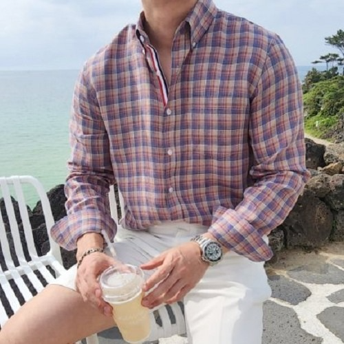 TH*M BROW*E 린넨 체크셔츠