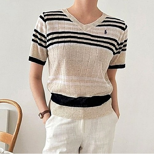POLO 랄프로렌 엘빈 단가라 V린넨 반팔