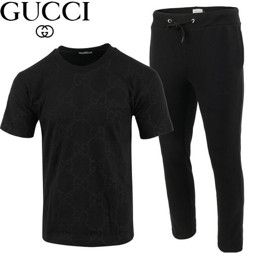 GUC*I 블랙 자가드 반팔 & 긴바지 트레이닝 셋트 > 구찌