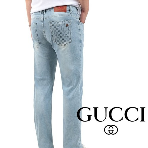 GUC*I 자가드 포켓 스틸 연청 슬림진 > 구찌