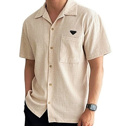 PRA*A D-vang 린넨 카라 반팔셔츠 > 프라다
