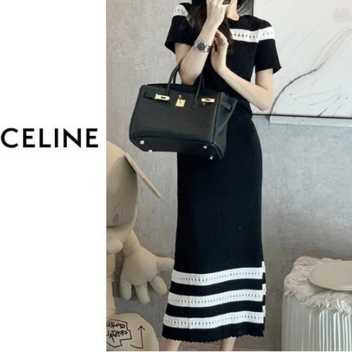 셀*느 배색라인 롱스커트 니트투피스 > 셀린느