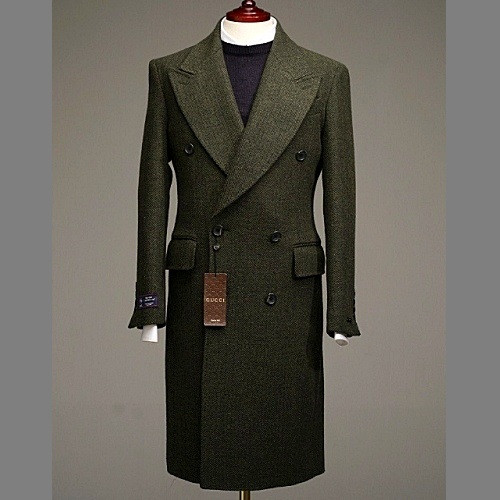 GUC*I 프리미엄 헤링본 울 코트 - 카키 > 구찌