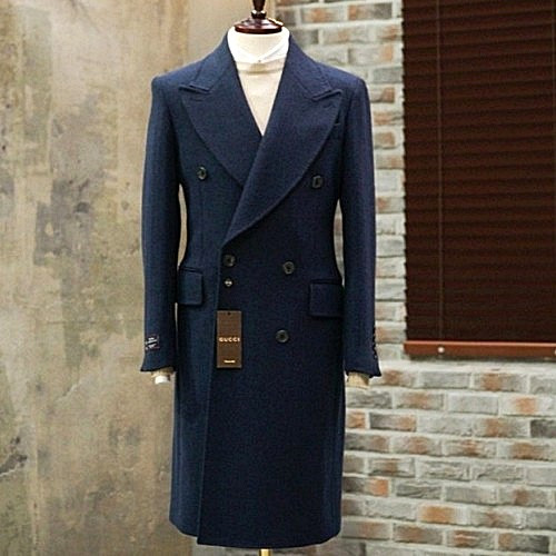 GUC*I 프리미엄 헤링본 울 코트 - 네이비 > 구찌