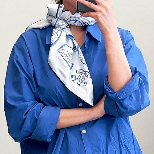 CHANEL 달마시안 CC 로고 스퀘어 실크 스카프 > 샤넬