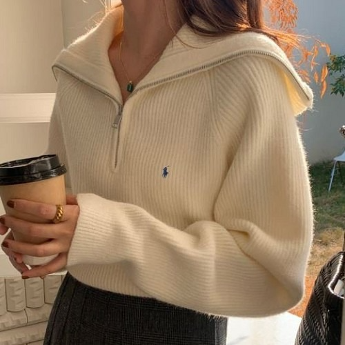 폴* 어반 카라 반지퍼 니트