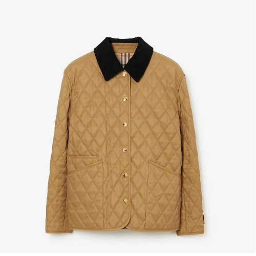 BURB*RRY 코듀로이 칼라 다이아몬드 퀼팅 재킷 카멜 > 버버리
