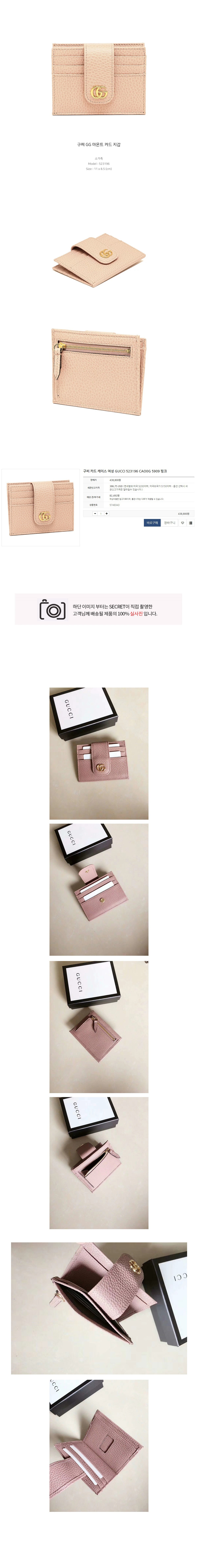 구* GG 카드지갑 핑크 > 구찌