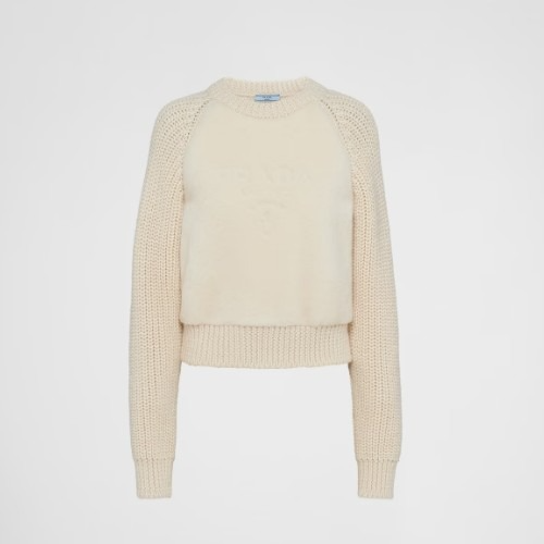 PRA*A 알파카 크루넥 스웨터 - 화이트 > 프라다