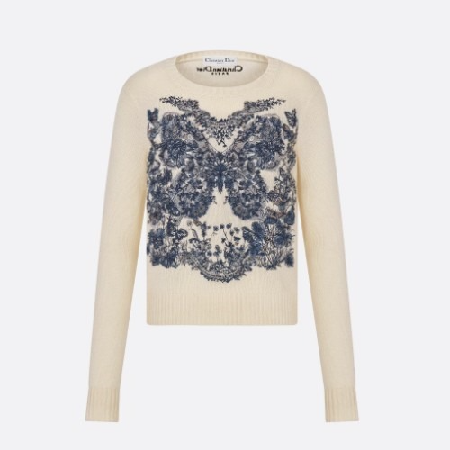 DI*R 자수 스웨터 Butterfly Around the World 모티브 - 에크루 & 미드나잇 블루 > 디올