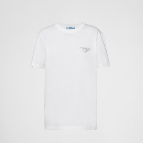 PRA*A 자수 저지 티셔츠 - 화이트 > 프라다