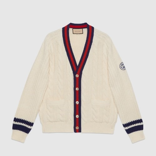 GUC*I 웹(WEB) 케이블 울 니트 가디건 - 아이보리 & 블루 & 레드 > 구찌