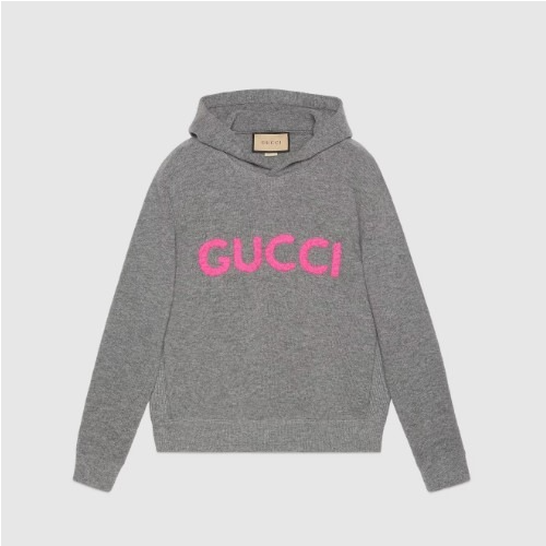 GUC*I 울 후드 스웨트셔츠 - 그레이 & 핑크 > 구찌