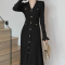 CHAN*L 금장 단추 브이 롱 원피스 > 샤넬