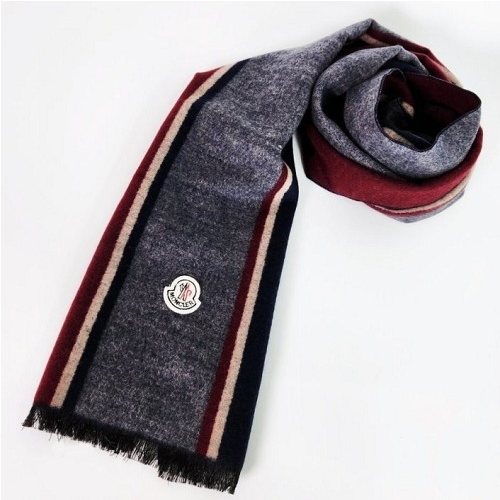 MONCL*R M 캐시미어 혼방 머플러 삼색패턴 삼선 패치 > 몽클레어