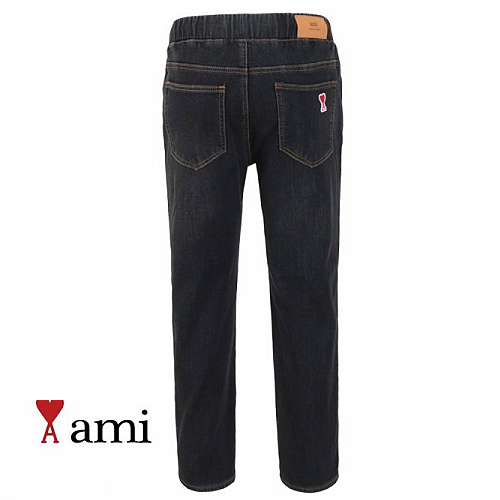 AMI 융기모 흑청 세미 테이퍼드 팬츠 > 아미
