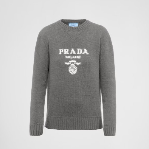 PRAD* 캐시미어 및 울 프라다 로고 크루넥 스웨터 > 프라다 - LuxTwin