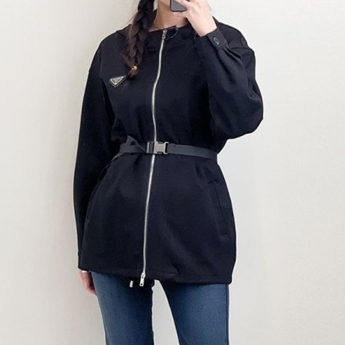 PRA*A 여성 후디 레터링 로고 벨트 집업 > 프라다