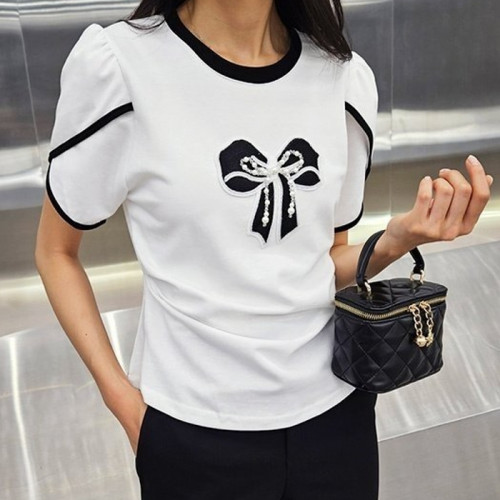 MIUM*U 리본 튤립소매 티셔츠 > 미우미우