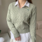• 아이앱스튜*오   린넨 반팔 카라 니트