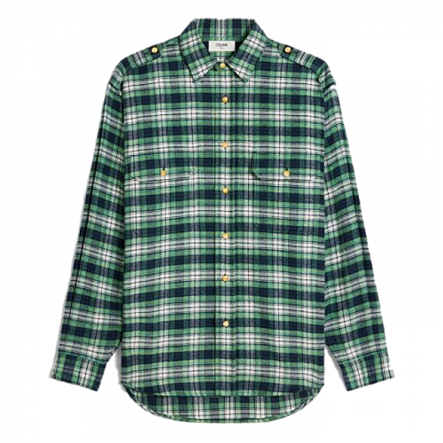 CELINE 에크루 플란넬 체크 오버셔츠 > 셀린느