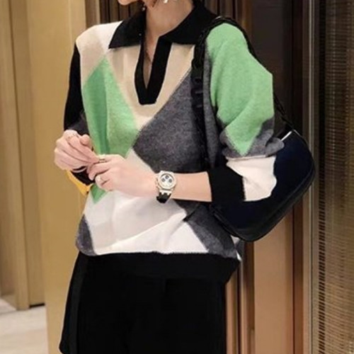 CELI*E 카라 아가일 니트 (1143) > 셀린느 - LuxTwin