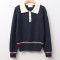 • 몽클*어   네이비 배색 반집업 니트 (2987)