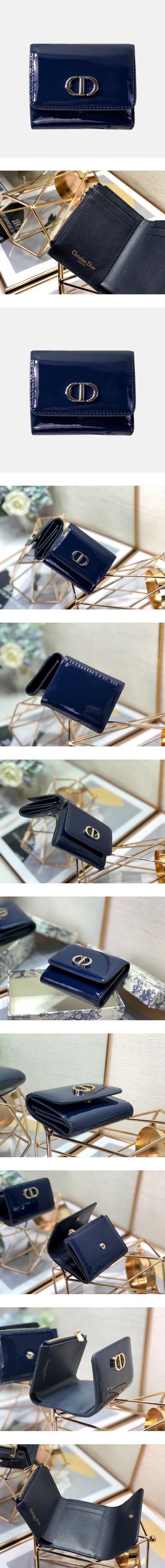 DIOR 디올 CD 버클 레더 반지갑 네이비 > 디올