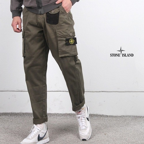 스톤 아일랜* 배기 히든원포켓 롤업팬츠 - 카키 > 스톤아일랜드