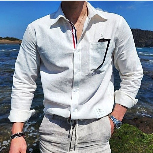 톰브*운 THOMBROWNE 프리미엄 린넨 셔츠 - 화이트 > 톰 브라운