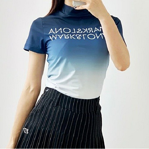 (국내배송) 마크앤*나 MARK & LONA 그라데이션 로고 하이넥 반팔티셔츠 > 여성